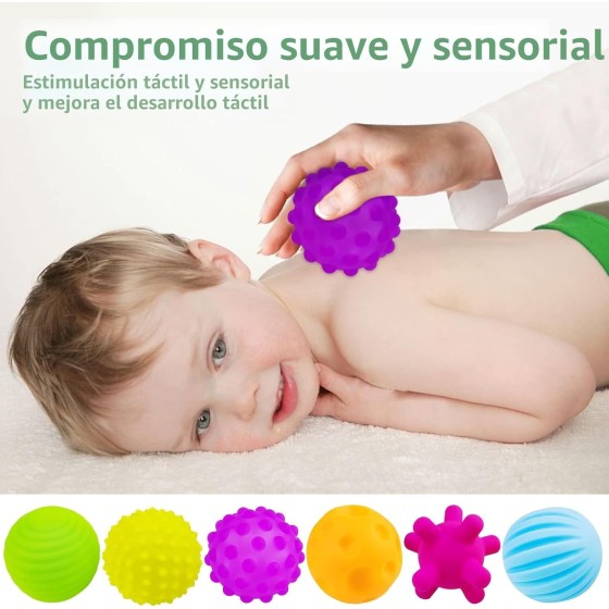 Set de estimulación visual y sensorial compuesto por 6 pelotas de goma de 6 cm de diámetro cada una en diferentes colores y...